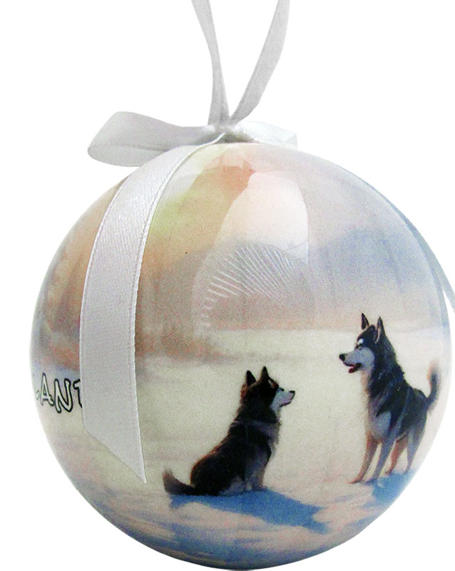 / CHRISTMAS BALL, HUSKYS IN WINTER LAPLAND/FINLAND