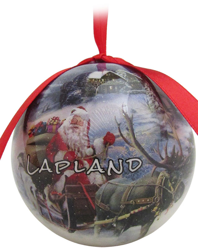 CHRISTMAS BAUBLE, SANTA WITH A DRAWN LAPLAND/FINLAND