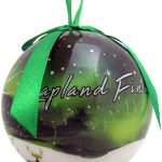 CHRISTMAS BAUBLE, GREEN/REINDEER/NORTHERN LIGHTS LAPLAND/FINLAND
