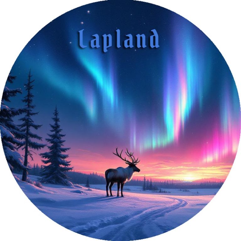 ROUND MAGNET, REINDEER+NORTHERN LIGHTS
