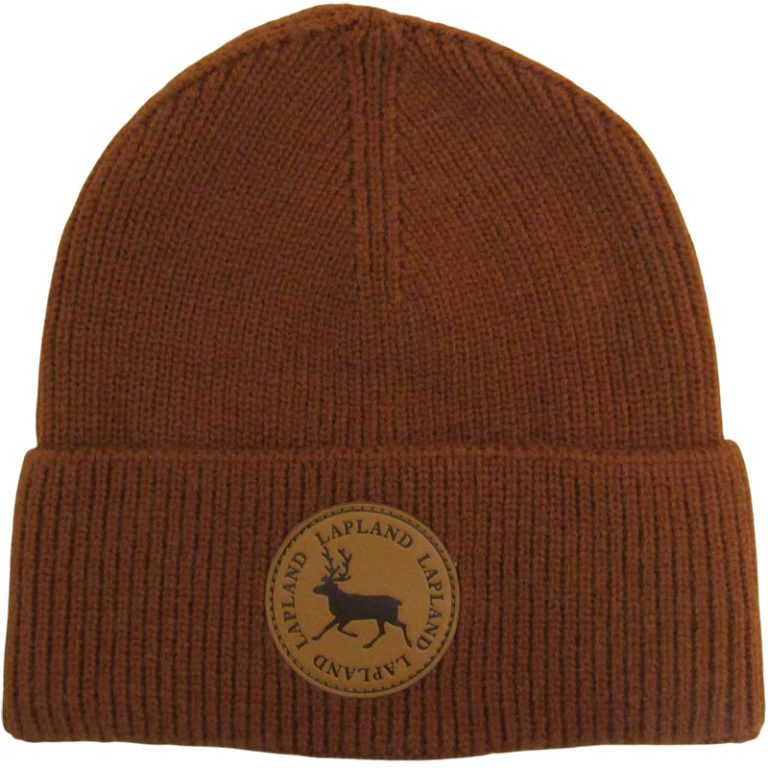 BEANIE, BROWN + LEATHER PATCH REINDEER/LAPLAND