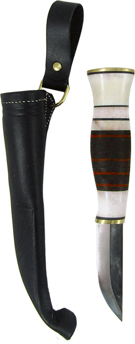 / KNIFE, 7.7 CM, BONE / LEATHER, RED STRIPES
