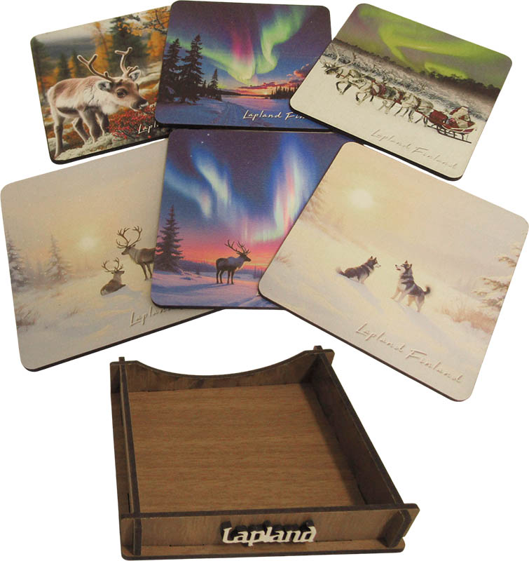 / WOODEN COASTER 6 pcs set, Lappish pictures